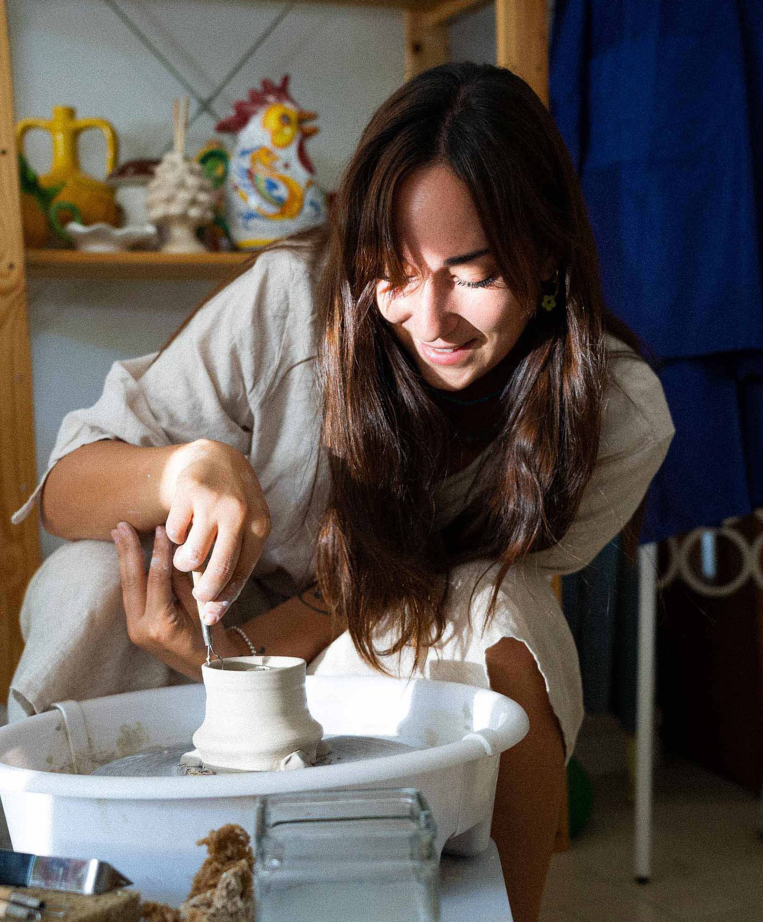 Lavorare con l'argilla può diventare una forma di meditazione, soprattutto se lo fai con la cura e la passione di Benedetta Cardillo, laureata allo IED di Roma e fondatrice di Olivia Studio Ceramiche. Ti insegnerà, con i suoi anni di esperienza in quest'arte manuale, tutto quello che c'è da sapere per iniziare a lavorare la ceramica.